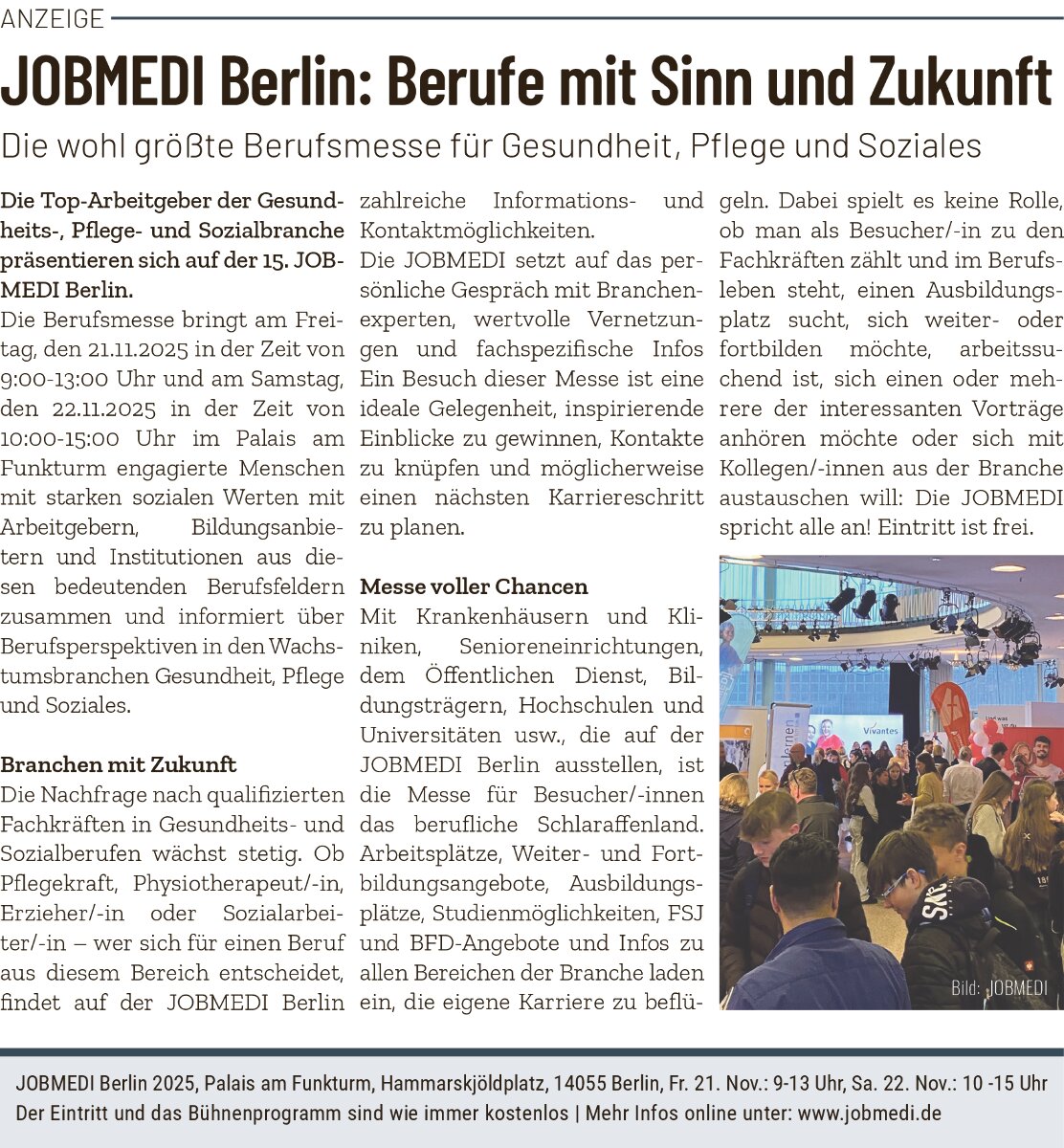 Am 21. und 22. November 2025 öffnet die JOBMEDI Berlin wieder ihre Türen im Palais am Funkturm. Die Messe richtet sich an alle, die...