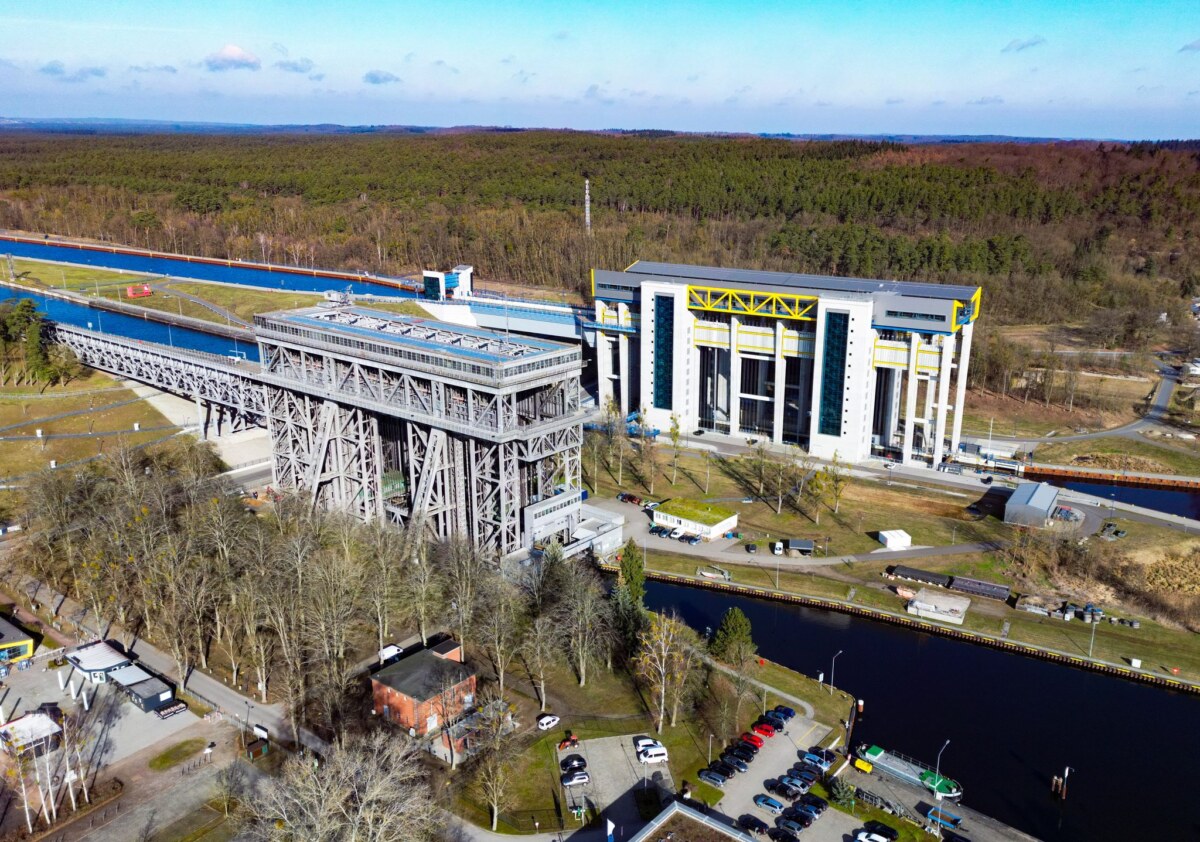 Durch das alte Schiffshebewerk, das weiterhin Betrieb ist, passt ein so langer Schubverband nicht. Mit dem Spezialschiff «Rhenus Berlin 1» werden etwa Rotorblätter für Windenergieanlagen transportiert. Nun ist das neue Hebewerk erst einmal bis voraussichtlich 5. Dezember 2025 für planmäßige Wartungsarbeiten gesperrt.