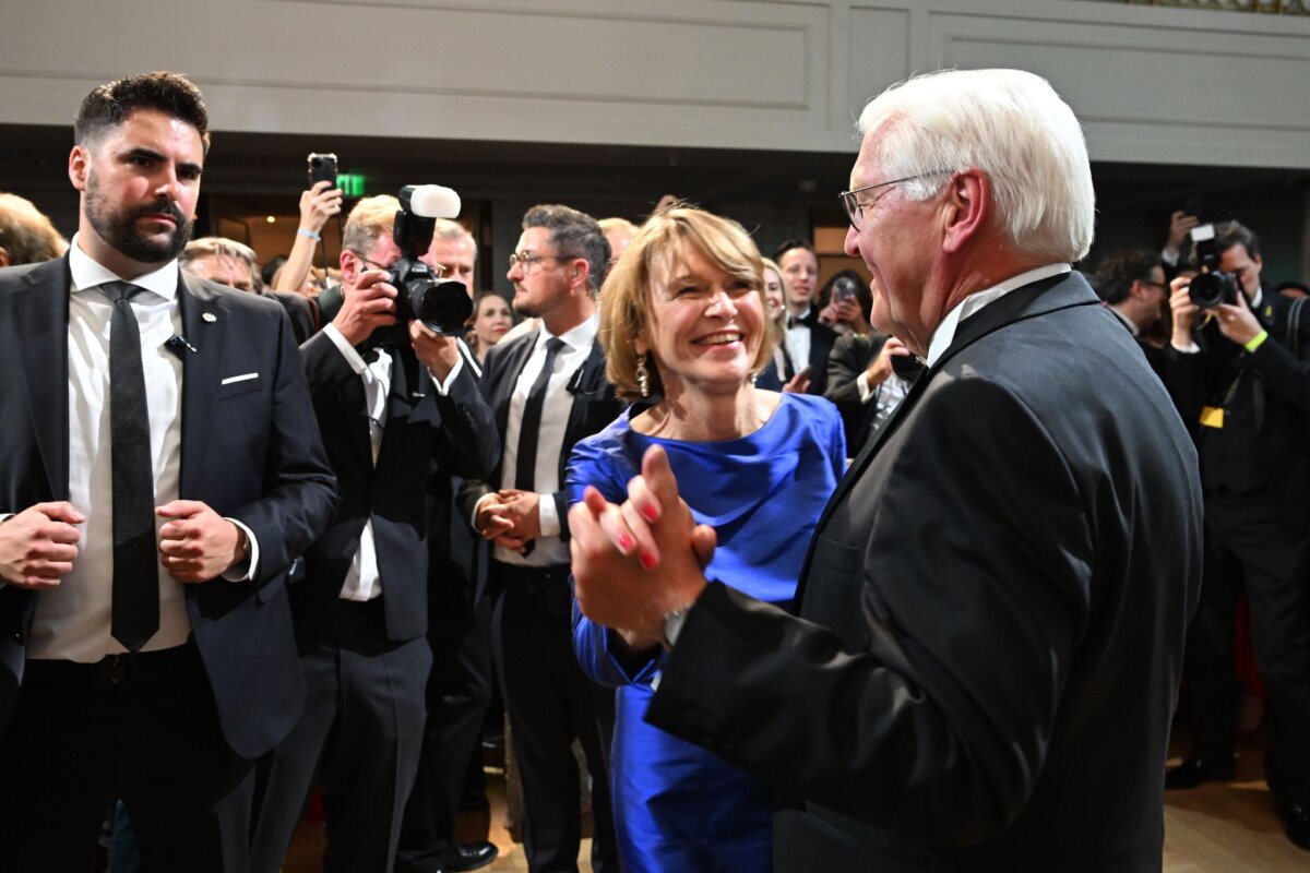 Angesichts des Ballmottos «Für die Demokratie. Pressefreiheit stärken» wurde aber auch Steinmeier politisch. An der Demokratie müsse man arbeiten und nicht nur darüber schimpfen. «Ich bin besorgt über manche Haltung, die wir in den sozialen Medien finden, dieser Ton der Unversöhnlichkeit, der dort manchmal herrscht.» Mit Blick auf junge Menschen ergänzte seine Frau: «Seid interessiert, bringt euch ein, es liegt auch an euch, wie wir diese Demokratie weiter gestalten.»