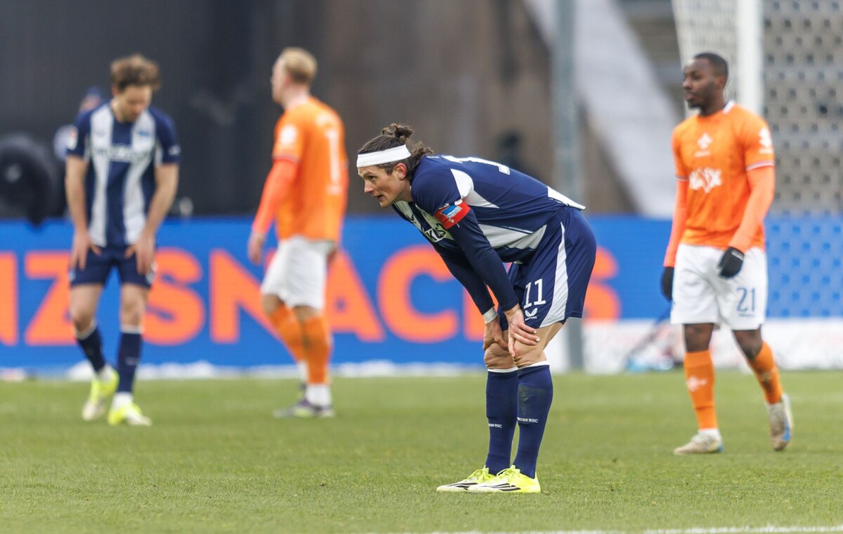 Statt sich über die durchaus harte Entscheidung von Schiedsrichter Florian Lechner bei der Roten Karte für Kownacki zu echauffieren, ärgerten sich die Berliner über die eigenen Fehler. In den ersten vierzig Minuten hatte die Hertha den seit Ende Oktober ungeschlagenen Konkurrenten dominiert und lag vollkommen verdient 2:0 vorn.