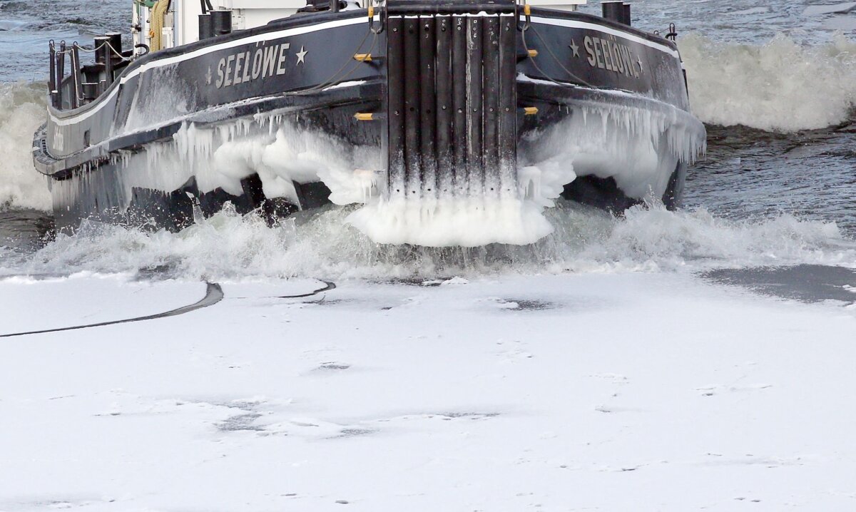 Der Eisbrecher «Seelöwe» ist derzeit auf der Unteren Havel-Wasserstraße und dem Teltowkanal unterwegs. (Archivbild) Foto: Wolfgang Kumm/dpa