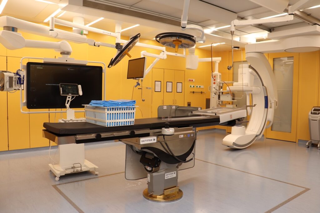 Der Erweiterungsbau soll vor allem Urologie, Gefäßchirurgie sowie Allgemein- und Viszeralchirurgie entlasten. Die technische Ausstattung erlaubt minimalinvasive und robotergestützte Verfahren, die präziser und für Patientinnen und Patienten schonender sind. Der Hybrid-OP ermöglicht die Kombination bildgestützter Eingriffe mit einem schnellen Wechsel hin zu offenen Operationen, falls der Verlauf es erfordert. Damit lassen sich Eingriffe in einem Termin abbilden, inklusive nur einer Narkose – ein klarer Vorteil für Sicherheit und Genesung.