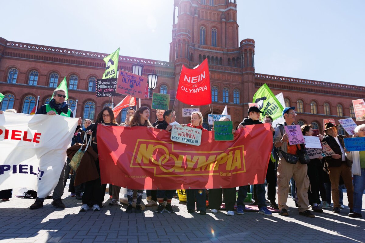 Berlin (dpa) – Das Bündnis NOlympia hat die erste Etappe für ein Volksbegehren gegen die Bewerbung Berlins um Olympische und Paralympische Spiele gestartet. «Die Berliner sollen entscheiden, ob so große Geldsummen für ein zweiwöchiges Event bereitgestellt werden sollen», sagte Klara Schedlich, Sprecherin für Sportpolitik der Grünen-Fraktion, bei der Auftaktveranstaltung vor dem Roten Rathaus, «wir haben eine Finanzkrise und ein Haushaltsloch. Berlin hat andere Prioritäten als Olympia.»