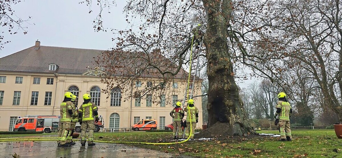 Mitarbeiter des Schlossparks Schönhausen hatten Rauch aus dem Stamm eines rund 250 Jahre alten, unter Denkmalschutz stehenden Baumes bemerkt. Der Baum bildet zusammen mit vier weiteren Exemplaren ein historisches Ensemble um den Brunnen vor dem Schloss.