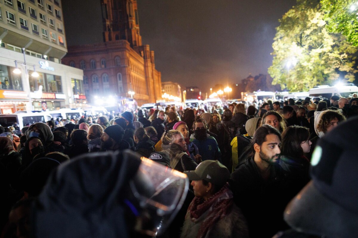 Immer wieder zu Zwischenfällen kam es am Abend bei einer propalästinensischen Demonstration nahe dem Alexanderplatz. Dort hatten sich am zweiten Jahrestag des Terrorangriffs der Hamas auf Israel trotz eines Verbots rund 300 Menschen versammelt.